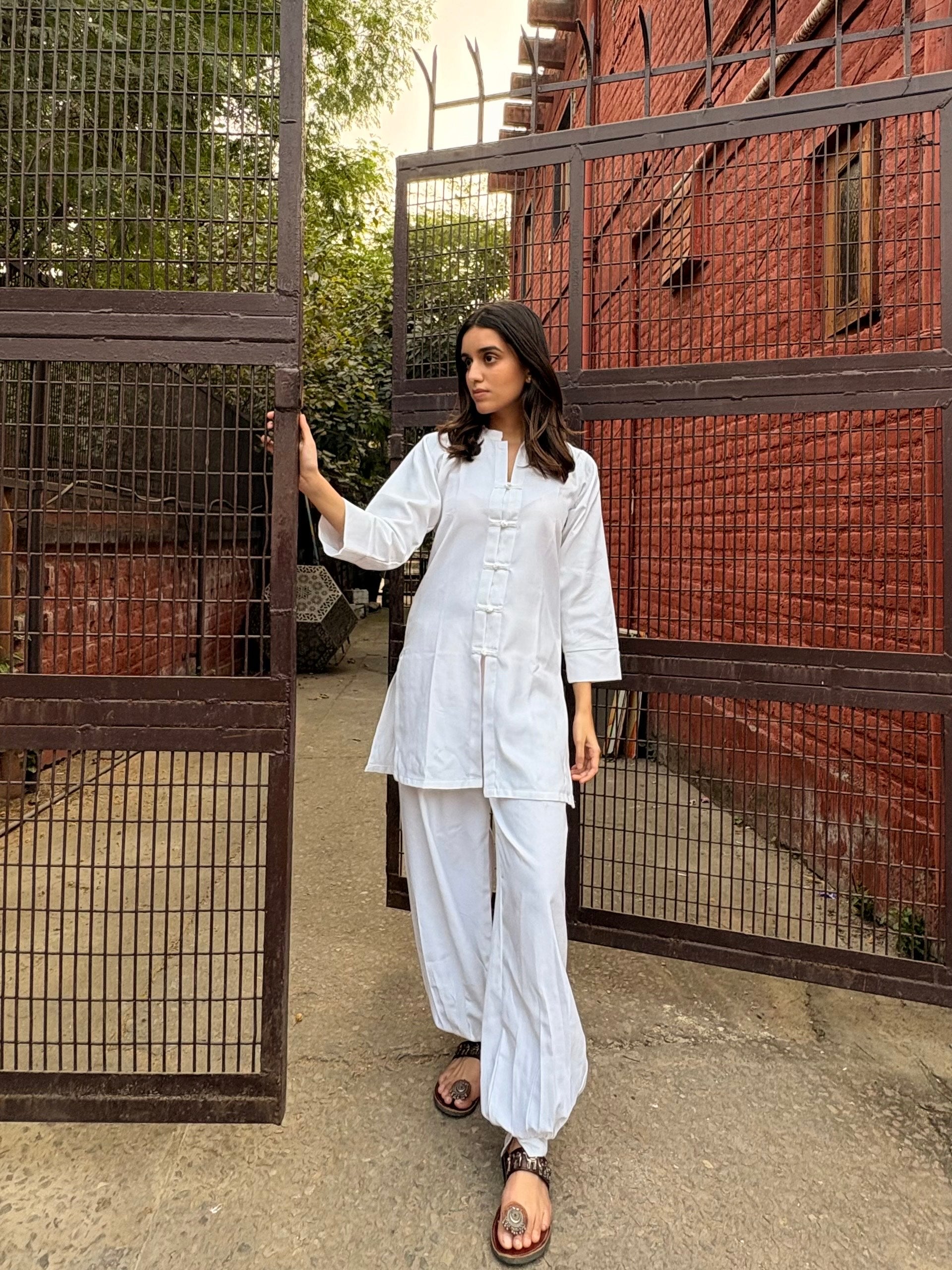 Pure, pristine and unmistakably contemporary, Blancha is crafted entirely in luxurious pashmina woollen fabric, a co-ord set that turns the simplicity of white