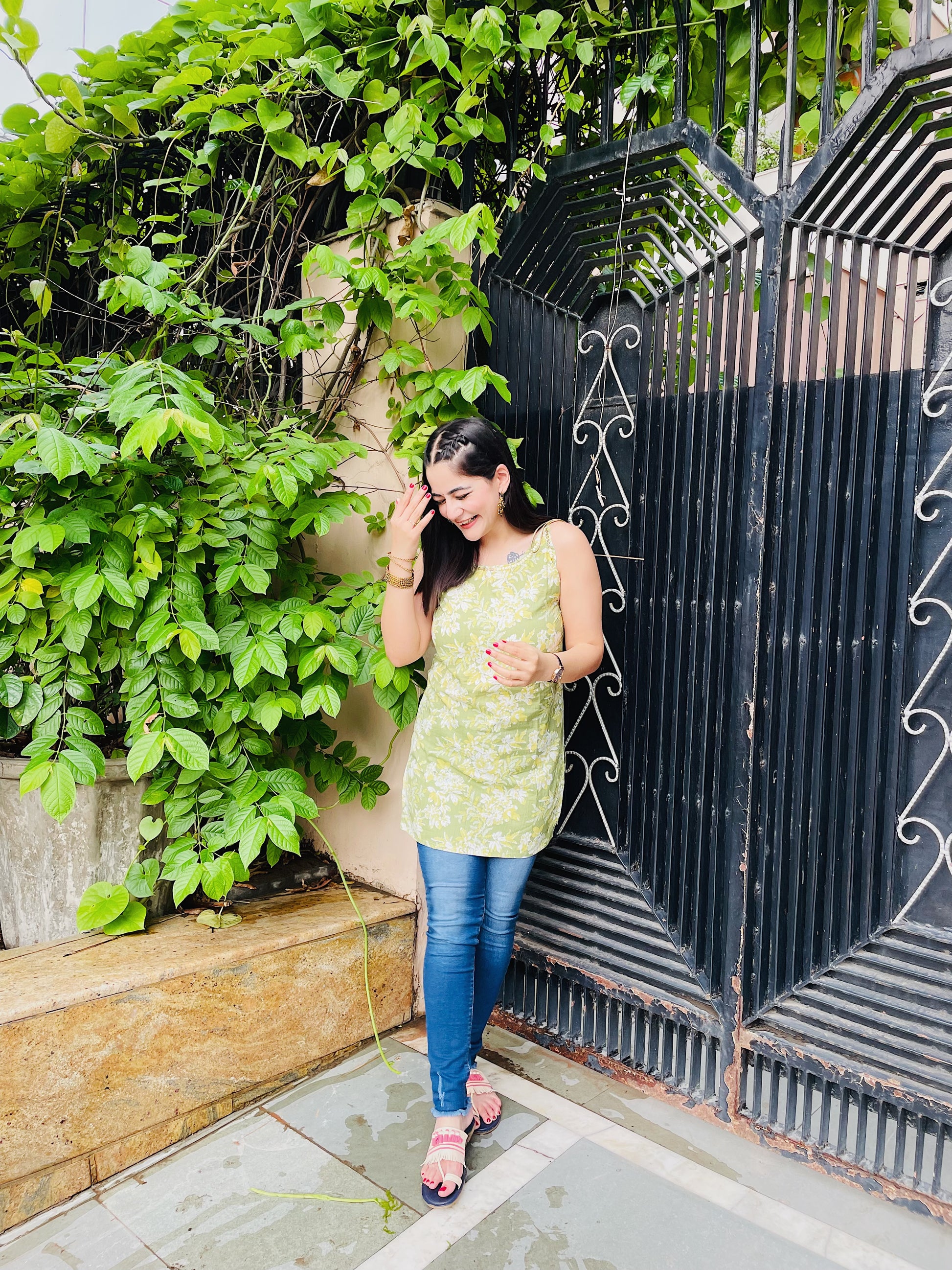 A refreshing green kurti with subtle floral designs, combining comfort and style effortlessly.