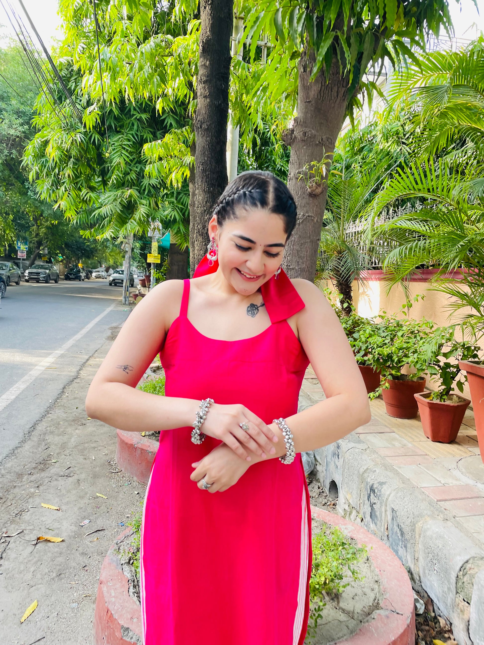 Gulnaar is not just a co-ord set — it’s a mood. Drenched in a vivid fuchsia hue and detailed with sleek side stripes for a dash of edge, this sleeveless beauty is all about owning your moment. Whether you're heading out to brunch, dancing under fairy lights, or walking your own runway, this look brings confidence, comfort, and color.