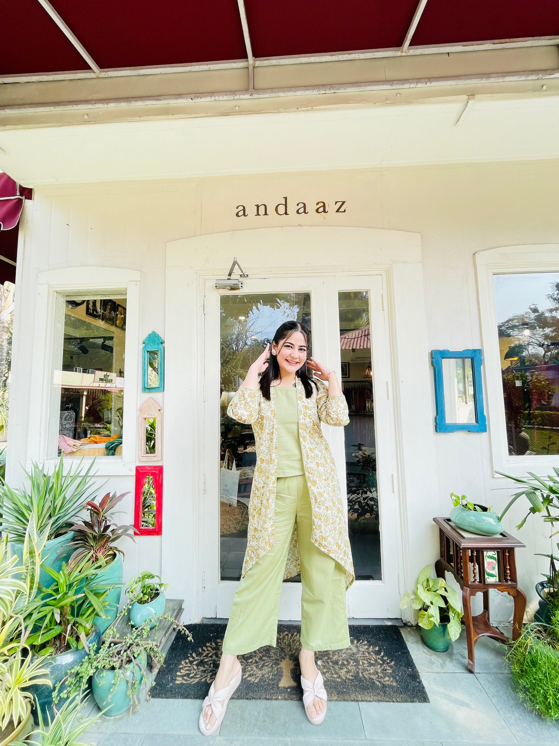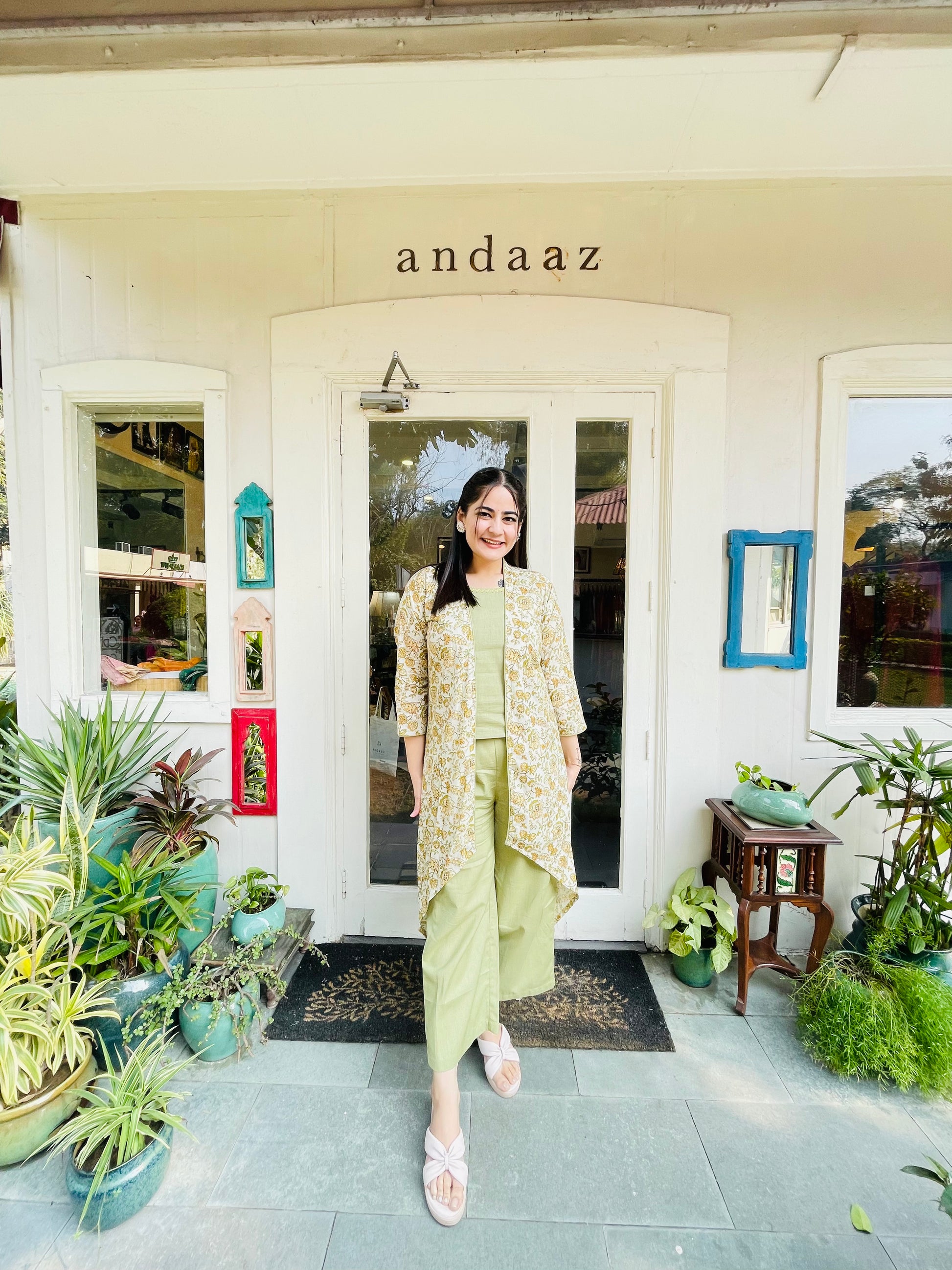 Step into sophistication with our Sage Green Co-ord Set, perfectly complemented by a Cream Jacket for a refined, power-packed look. Designed for the modern woman, this three-piece cotton suit blends comfort with confidence, making it your ultimate go-to for summer.
